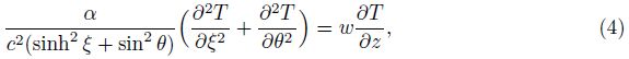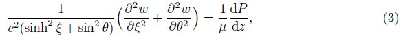 An obvious particular solution corresponding to the first term on the right-hand side of Eq. (12) is $-\frac{1}{24}$ sech4 ξ0 sinh4 ξ sin4 θ. To determine a particular solution of the second term on the right-hand side,we note that the product (sinh2 ξ+sin2 θ) sinh((2k−1)ξ) sin((2k−1)θ) can be expanded into sums of terms of the form sinh(iξ) sin(jθ). Observing that to each of these terms,a corresponding particular solution assumes the form sinh(iξ) sin(jθ)/(i2 − j2),where i ≠ j. In other words,
