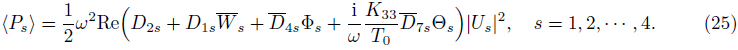 At the interface x3 = 0,the distribution of energy between different reflected and transmitted waves across a surface element of unit area is considered. Following Ikeda[4],Scott[44],and Kuang and Yuan[45],the normal acoustic flux P in a piezo-thermoelastic solid is