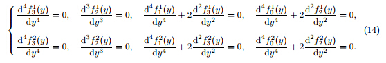 The stress function should satisfy the compatibility equation. Therefore,the controlling equation can be derived as follows: Because arbitrary x in the beam span should satisfy the coefficient term,the free term of the controlling align shown as Eq. (13) should be zero as follows: The following equations are obtained by computing the integrals of Eq. (14): where C11,C21,· · · ,C161 and C12,C22,· · · ,C162 are the unknown constants to be determined by means of the stress and force continuity conditions and the boundary conditions.The stresses in the x-direction and the y-direction (σx and σy) and the shear stress τxy of Zone 1 and Zone 2 can be expressed as