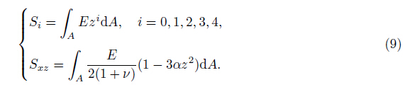 where FN and FS are the axial force and the shear force,respectively,and M is the bending moment. The stiffnesses in Eqs. (6)-(8) are defined byAs opposed to using the variationally-derived equations of equilibrium in the Reddy-Bickford beam theory[40],Levinson used the thickness-integrated equations of elasticity,which are exactly the same as those of the TBT[36]