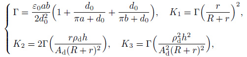 and a and b are the length and the width of the nanobeam axial capacitor controller, respectively. d0 is the distance between the two poles of the capacitor controller. ε0=8.854× 10-12 C2⋅N-1⋅m-2 is the permittivity of vacuum.