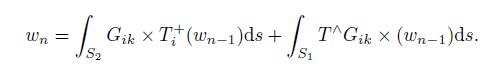 If the Green matrix Gik is known, each member of the Neumann series in Eq. (14) can be explicitly calculated as a simple-layer potential from the domain D with the formula
