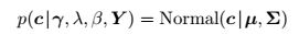 However, the posterior is intractable, since the marginalization p(Y) cannot be calculated analytically. Thus, the evidence procedure (type-Ⅱ maximum likelihood approach) can be adopted to perform Bayesian inference. Furthermore, the fast marginal likelihood maximization[42] should be used for fast estimation of γ, λ, and β. Finally, the posterior distribution for c is given by a multivariate Gaussian distribution,