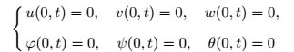 yield the following six nonlinear partial differential equations governing the three central line displacements in the axial, flapwise, and edgewise directions and the three cross-sectional angles of torsion, flapwise bending, and edgewise bending: