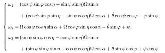 Since the vibrations are measured on the oxyz-frame, the local inertia moments should be transferred from o0x3y3z3 to oxyz, i.e.,