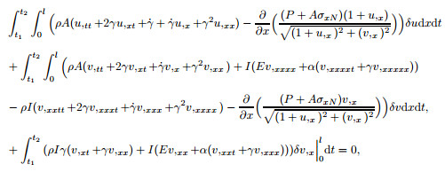 where a comma preceding x or t indicates a partial derivative with respect to x or t. l is the length of the beam, A is the cross area, ρ is the density, I is the moment of inertia, and