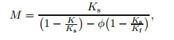 where the notations Ks and Kf are the bulk moduli for the solid and fluid phases, respectively. K stands for the drained bulk modulus. It has the relation of K=E/(3(1-2ν)).