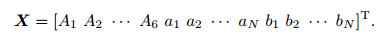 can be obtained finally, where A and B are the coefficient matrices containing Re and α, and X is a column vector of the form