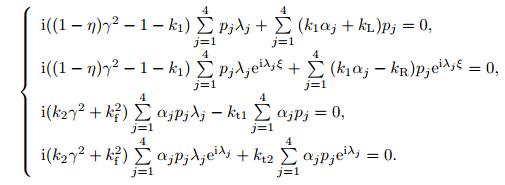 The condition of Eq. (24) to have a nonzero solution is that the determinant of the matrix H is to be zero. Therefore, the following equation can be derived: